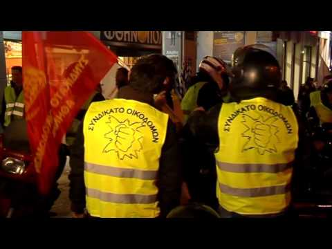 Μηχανοκίνητη πορεία στις δυτικές συνοικίες και στο κέντρο της Αθήνας με δεκάδες μηχανάκια, σκορπίζοντας τρικάκια με το σύνθημα «Διαλύουν την Ασφάλιση και βγαίνουμε στο δρόμο, πάρτε πίσω το νόμο – λαιμητόμο. Ξεσηκωμός τώρα!», πραγματοποίησε το απόγευμα της Πέμπτης 14 Γενάρη το Συνδικάτο Οικοδόμων Αθήνας.