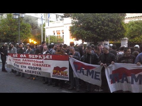 Διαμαρτυρία στο Μέγαρο Μαξίμου πραγματοποιεί αυτή τη στιγμή το Συνδικάτο Οικοδόμων Αθήνας με άλλα ταξικά σωματεία που συσπειρώνονται στο ΠΑΜΕ, για τη μεθόδευση της κυβέρνησης ΣΥΡΙΖΑ – ΑΝΕΛ, να περάσει μέσα στο σαββατοκύριακο τις βάρβαρες προτάσεις της για το ασφαλιστικό και το φορολογικό.